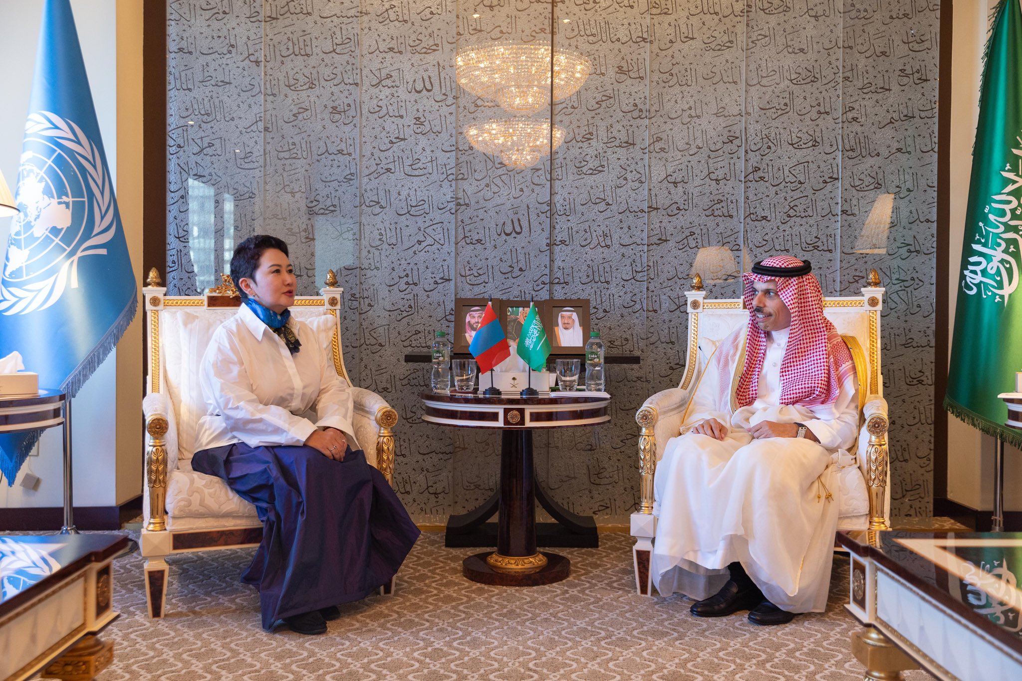 التقى صاحب السمو الأمير فيصل بن فرحان بن عبدالله وزير الخارجية، اليوم الجمعة، معالي وزيرة خارجية جمهورية منغوليا السيدة باتمونخ باتسيتسيغ، وذلك على هامش أعمال الجمعية العامة للأمم المتحدة في دورتها الثمانين، في مدينة نيويورك بالولايات المتحدة الأمريكية.